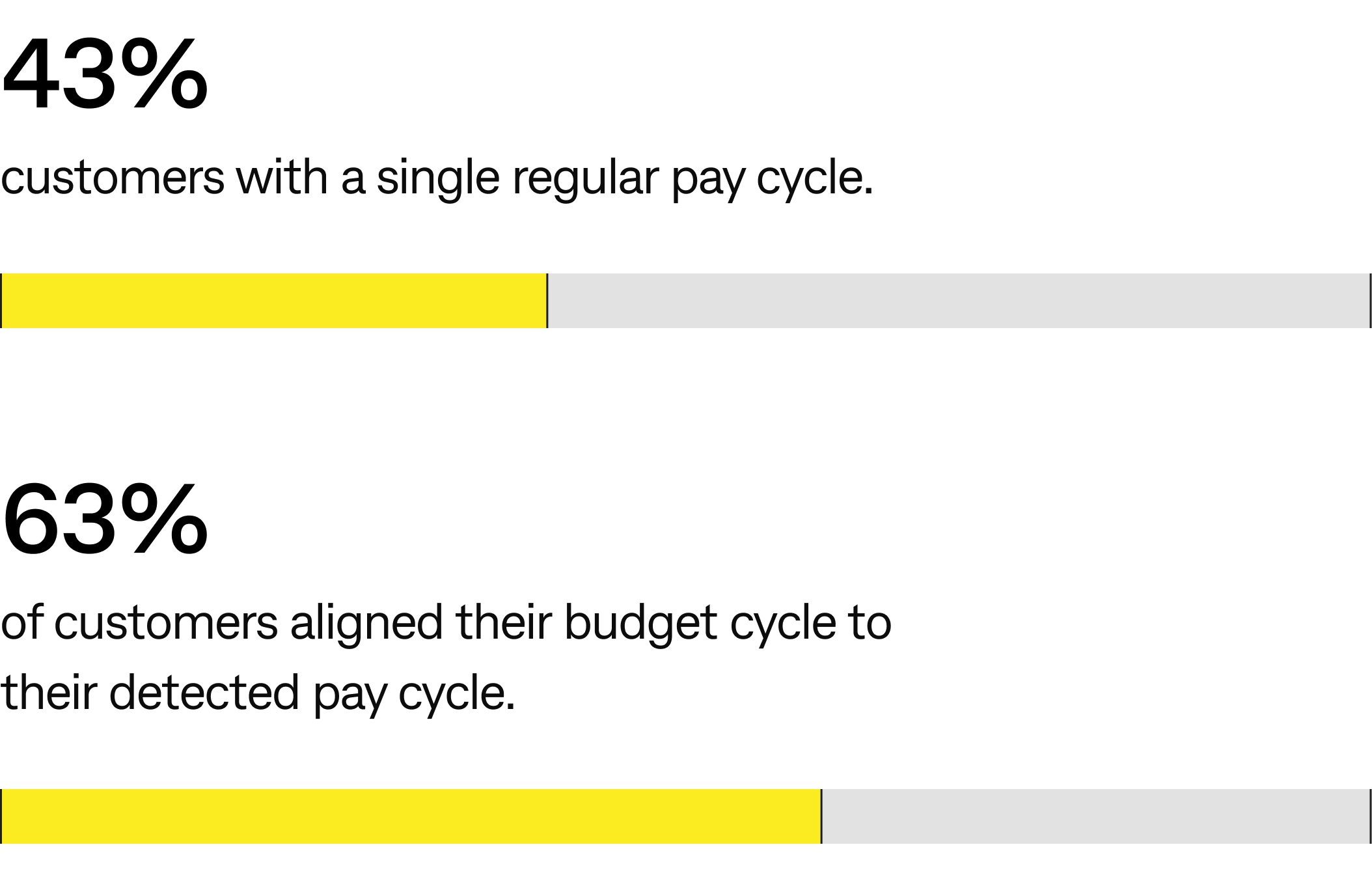 Despite fortnightly being the most common pay cycle, users in that group were also the most likely to choose a different budget cycle—indicating a deliberate attempt to correct the default